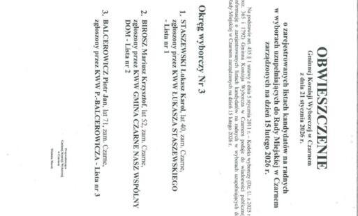 Wybory uzupełniające do Rady Miejskiej w Czarnem